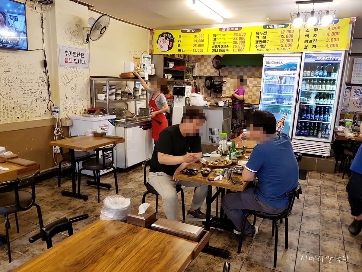 장충동영양족발집은 신림역과 봉천역 딱 중간에 위치해 있다. 주변에 팔공이나 해물수제비집 등 나름 사랑받는 맛집이 포진한 곳이다. 처음 신림동에 와서 족발집을 서칭하다 알게 된 곳인데, 옛날에는 봉천동 골목에 있다가 확장이전을 했고 한다. 이전을 한지 오래되지 않았는지, 내부는 나름깔끔하다.