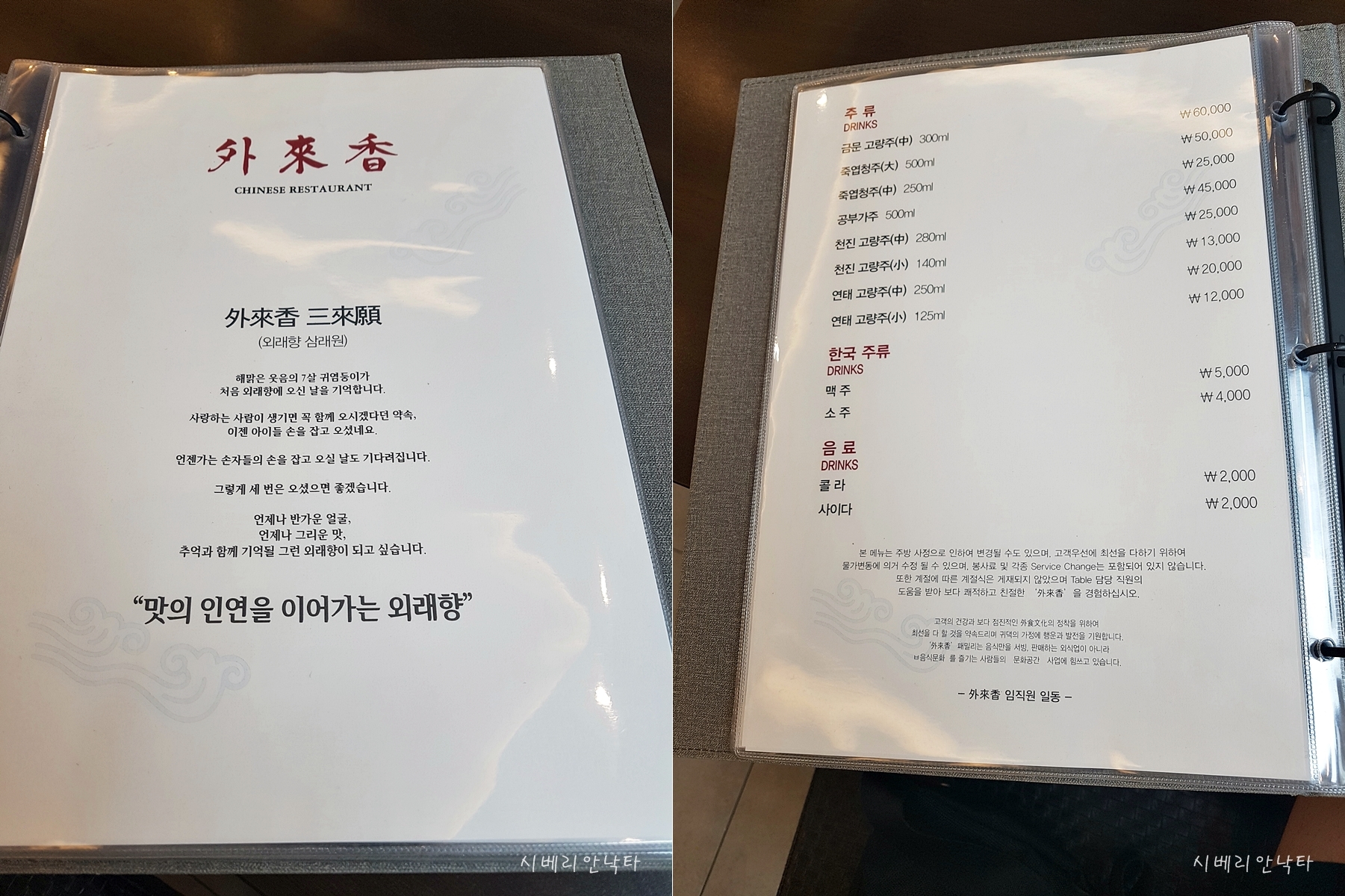 외래향은 식사류를 먹어도 후식을 준다.