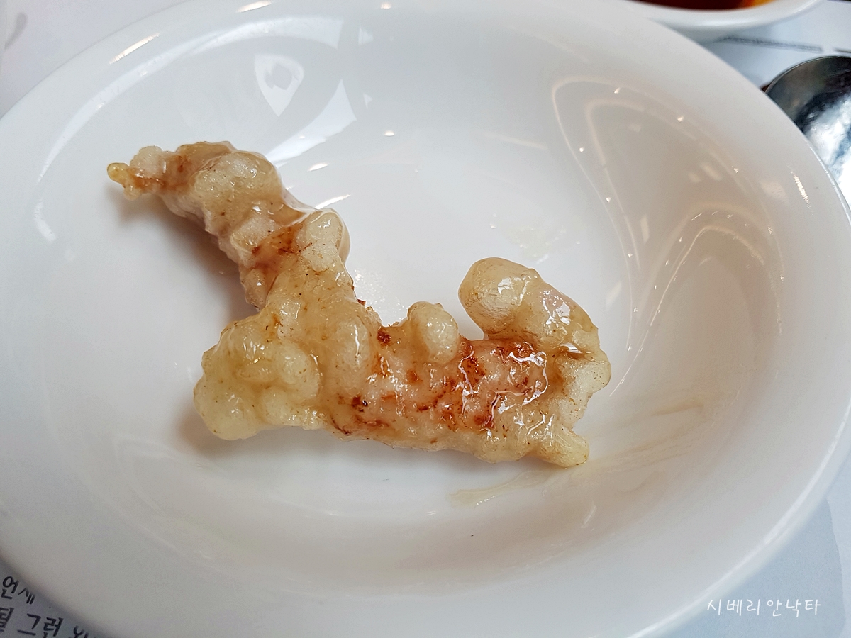 앞서 외래향탕수육에서도 말했지만, 튀기긴 잘 튀겼다. 그런데 사이즈가 작아서 씹는맛은 덜하다. 고기 크기가 조금만 더 컸으면 하는 바람이다. 그래도 쫄깃하고 돼지내가 전혀 없는건 칭찬할 만 하다.