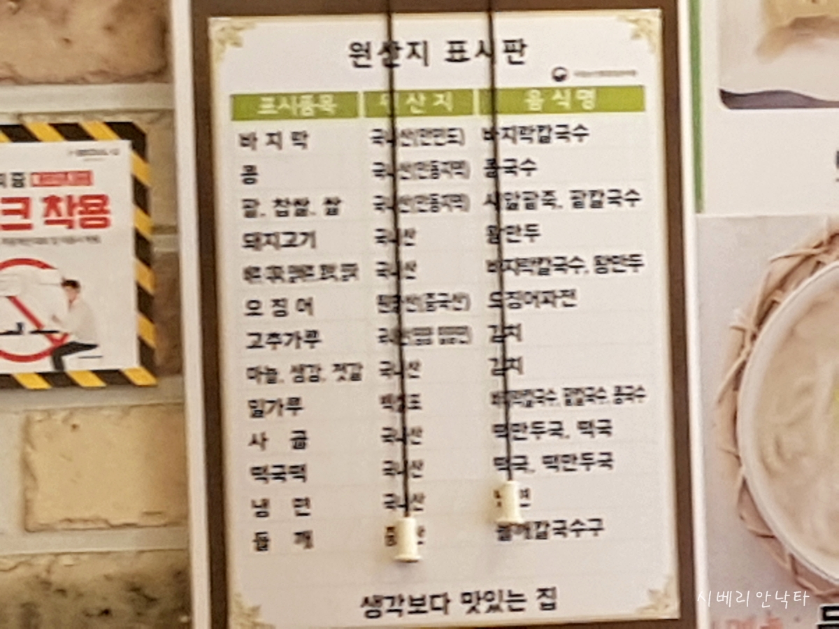 사진이 흔들렸는데, 재료 대부분의 원산지는 국내산이다.