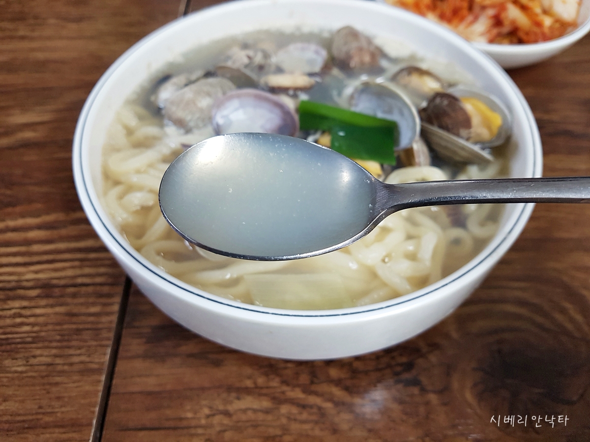 원래 바지락칼국수의 국물이 묽고 맑은 편인데, 여기는 그 맑은 정도가 다른 곳보다 훨씬 더 한듯하다.