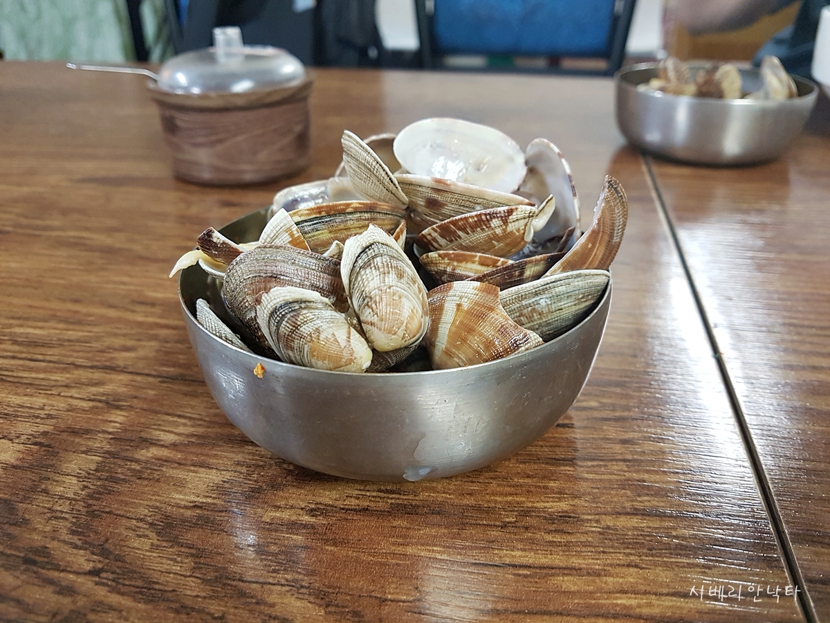 다른것 보다 '모래나 뻘이 나오면 새로 끓여드립니다.'라는 문구가 인상적이다. 조개류 음식을 먹으면 항상 뻘 씹히는게 신경쓰여서 그런게 적은 키조개나 가리비를 즐기는 편인데, 뻘이 나오면 새로 끓여준다니~! 사실, 조개 요리를 직접해본 사람은 알겠지만, 아무리 열심히 뻘을 뺀다고해도 완벽하게 제거하기는 쉽지 않다.