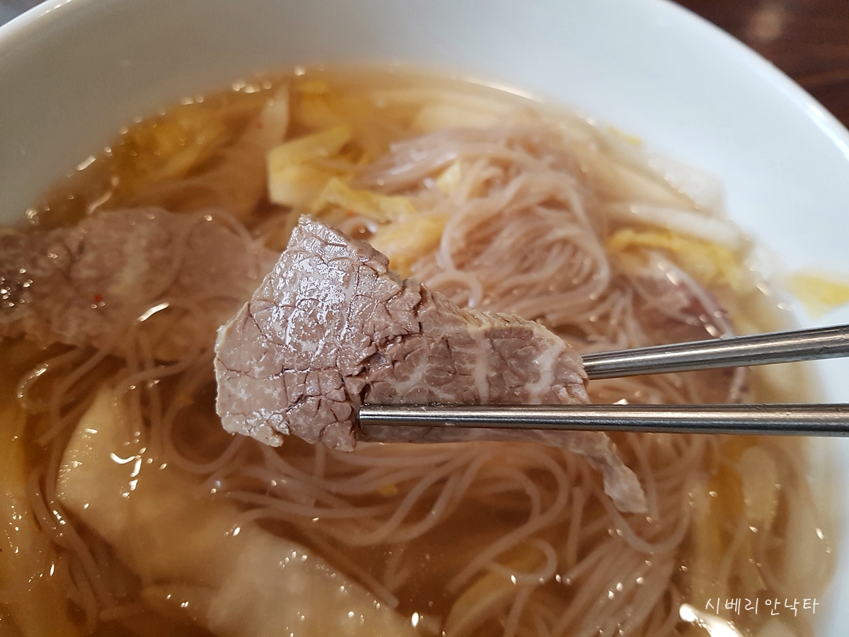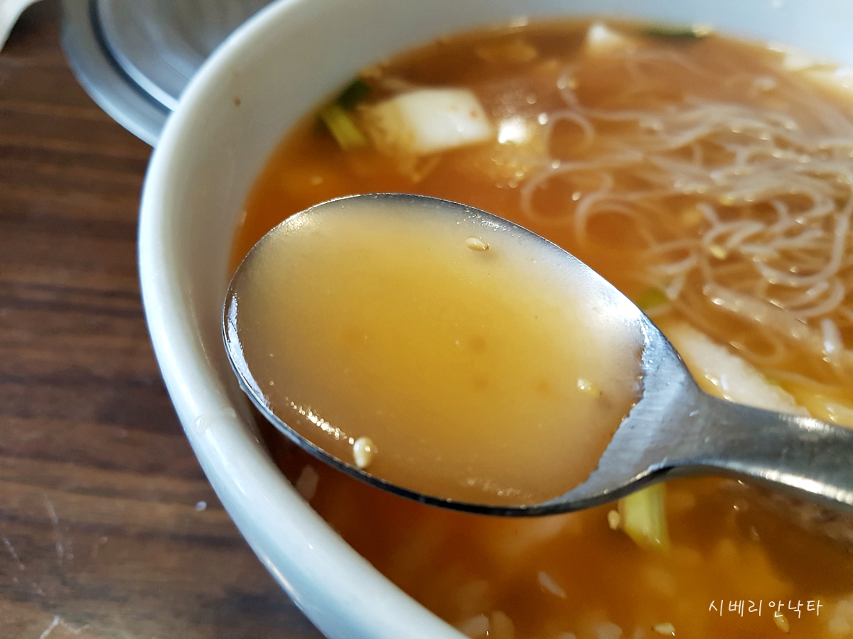 국물이 차가워 기름이 굳어 있지만, 씹다보면 입안에서 살살 녹는 기름맛이 괜찮다.