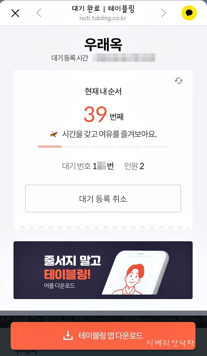 테이블링을 이용한다고 해서, 테이블링 앱에서 원격으로 대기를 거는건 불가능하고, 현장에 있는 기계에 개인정보를 입력해야한다.