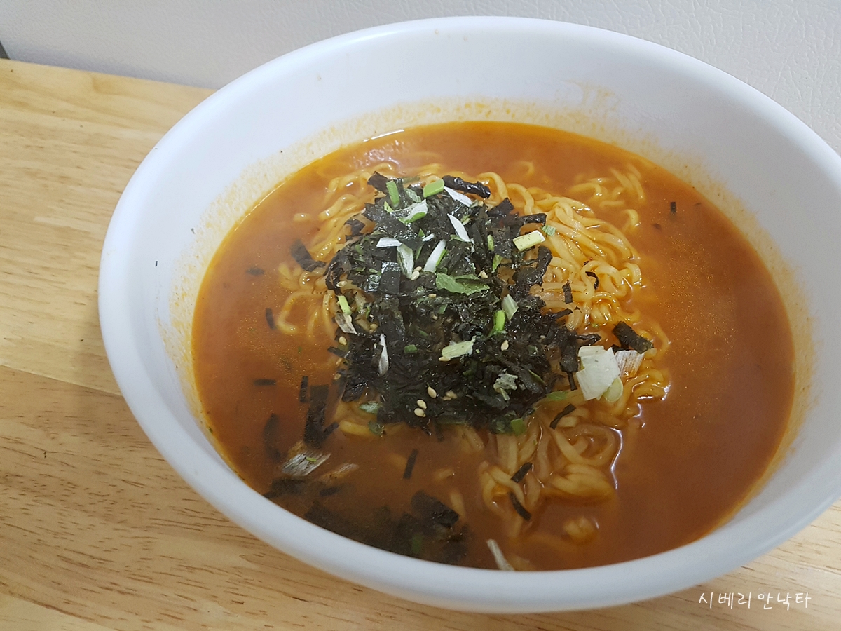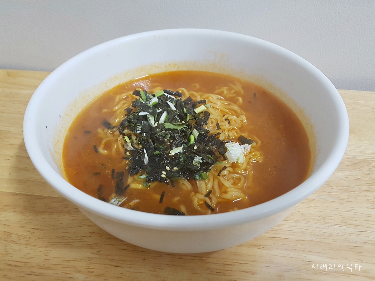 김과 통깨가 들어간 라면인데, 봉지 디자인은 신라면스럽다.