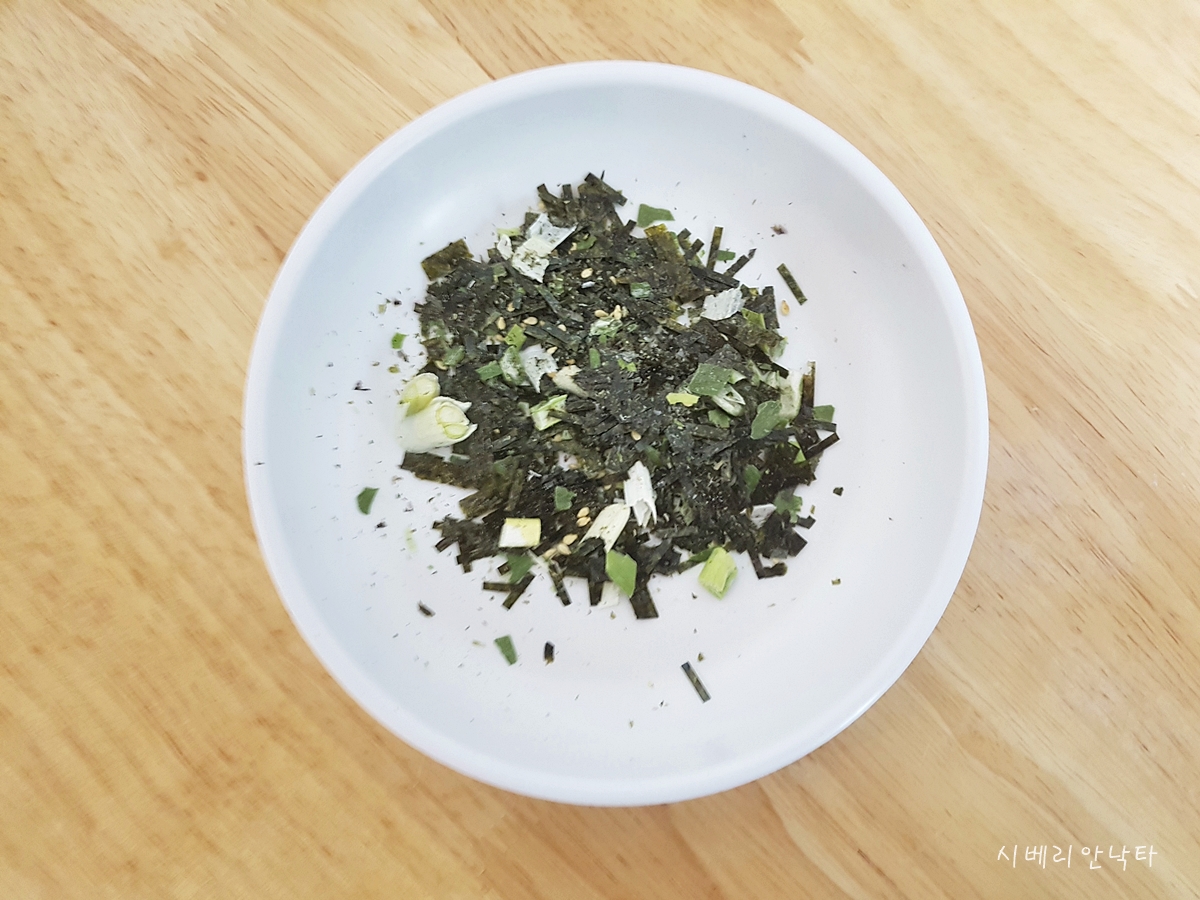 이제 후첨토핑인 김과 참깨를 넣고 마무리.