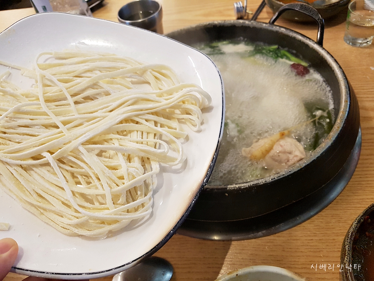 대충 닭은 다 먹고 칼국수 사리를 주문한다.