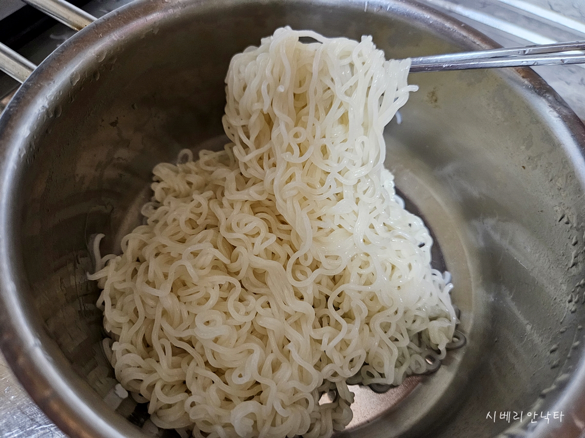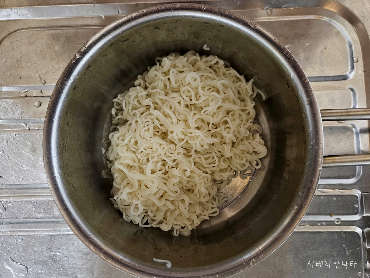 1. 끓는 물 600ml에 면을 넣고 3분간 끓인다.