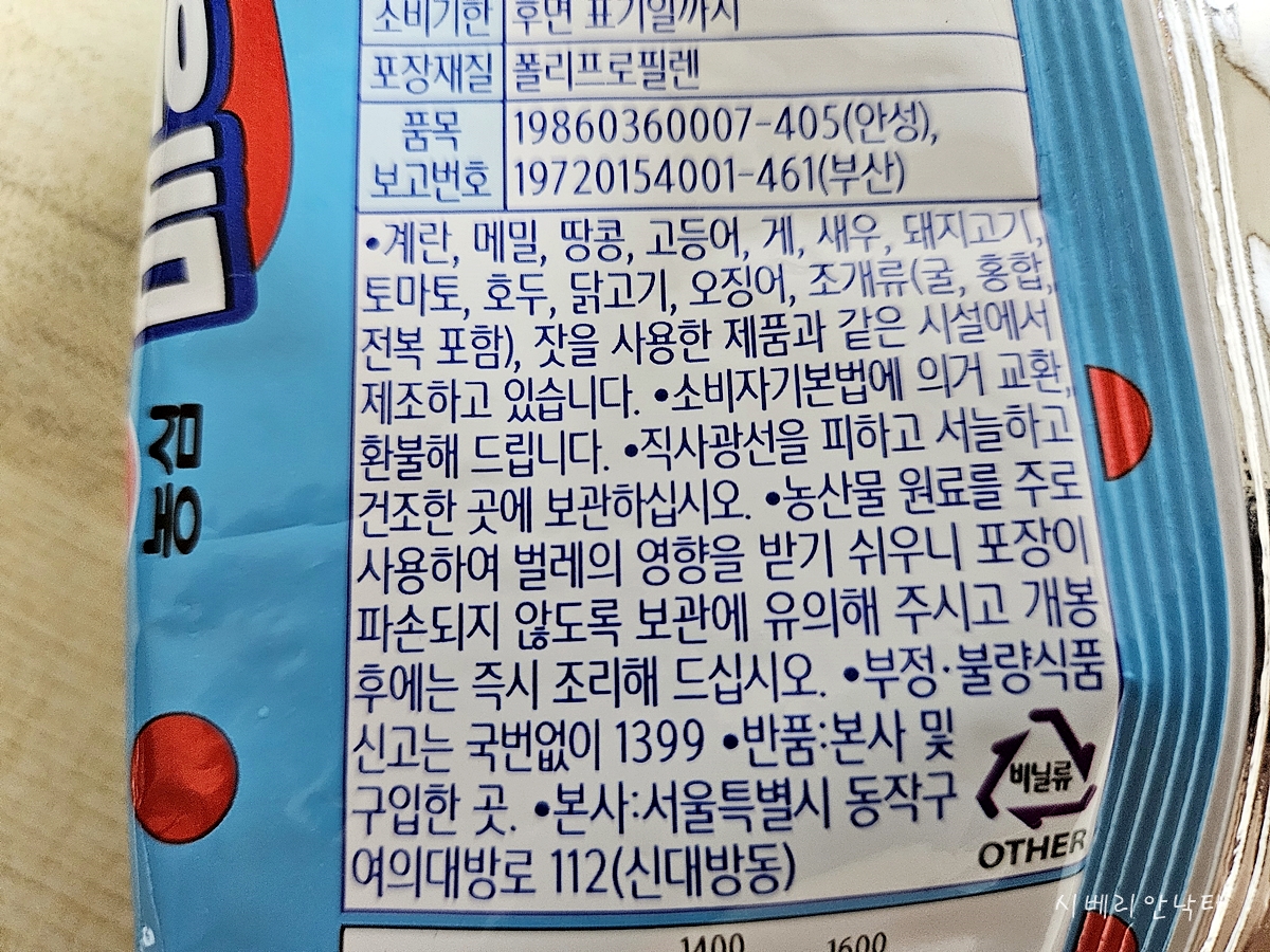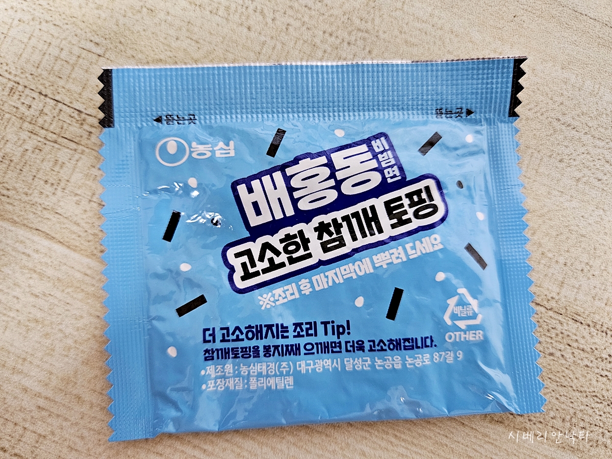 김가루와 통깨가 들어있다. 비빔면의 후레이크는 이렇게 후첨으로 있는게 조리하거나 먹는데 훨씬 편리하다.
