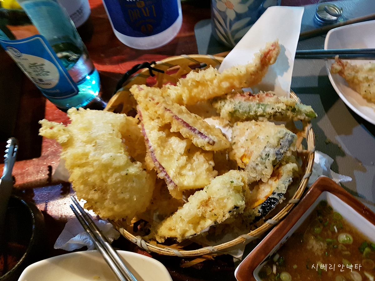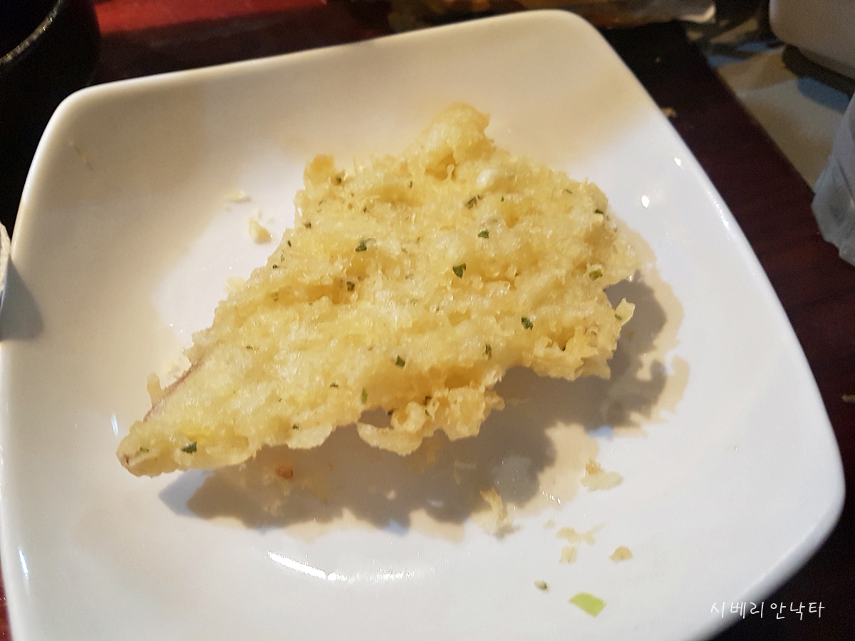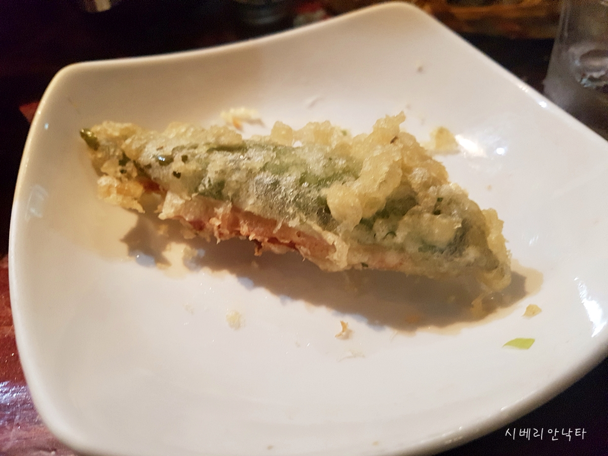 이렇게 튀김은 종류별로 다 먹었다. 지인의 말만큼 튀김 상태는 정말 좋았다. 고급이자카야나, 튀김 전문점 뺨치는 솜씨다. 그런데 모둠튀김의 구성은 아쉽단 생각이 든다. 너무 야채류 위주고, 변주를 줄 만한 재료가 전혀 없었다. 구성에 변화가 있다면 완전 재방문각인곳이다.
