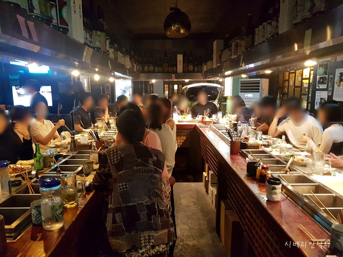 내부는 'ㄷ'자 형 다찌석으로 되어있었고, 중앙통로에도 마주 앉을 수 있는 구조다. 20명 정도 앉을 수 있는, 생각보다 협소한 공간이다. 참고로 서래오뎅 운영시간은 17~24시며, 동절기(11~1月)에는 이용시간이 2시간으로 제한된다.