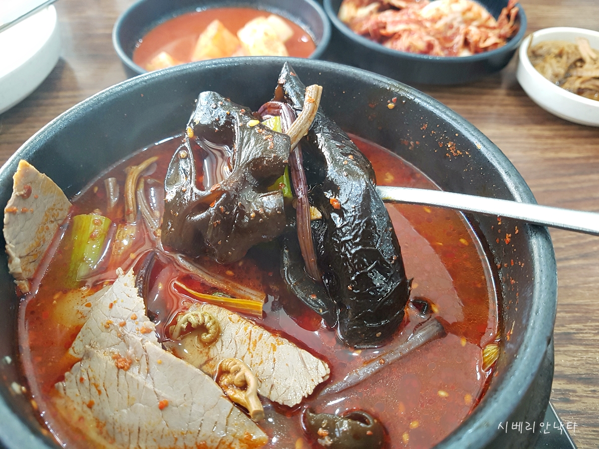 국물은 완전히 육개장 맛이다.