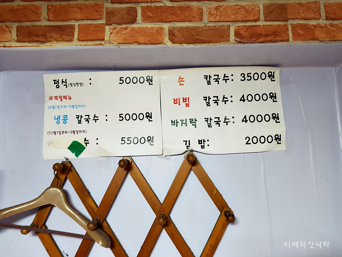 손칼국수가 3500원이다. (작년에 방문했는데, 아직도 이 가격인듯하다.)