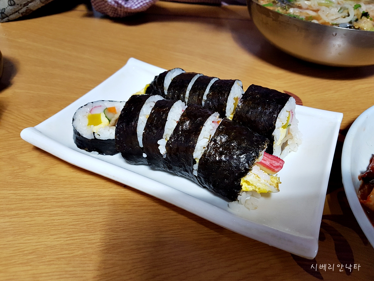 밥은 간이나 초맛이 약해서, 김밥만 먹긴 살짝 심심하고 칼국수와 같이 먹기 딱 좋다.