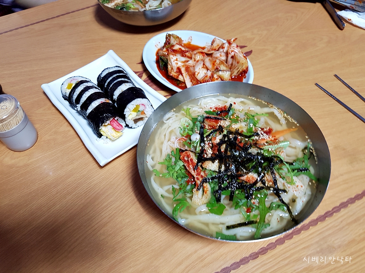 정말 완벽한 칼국수+김밥의 한상이다.