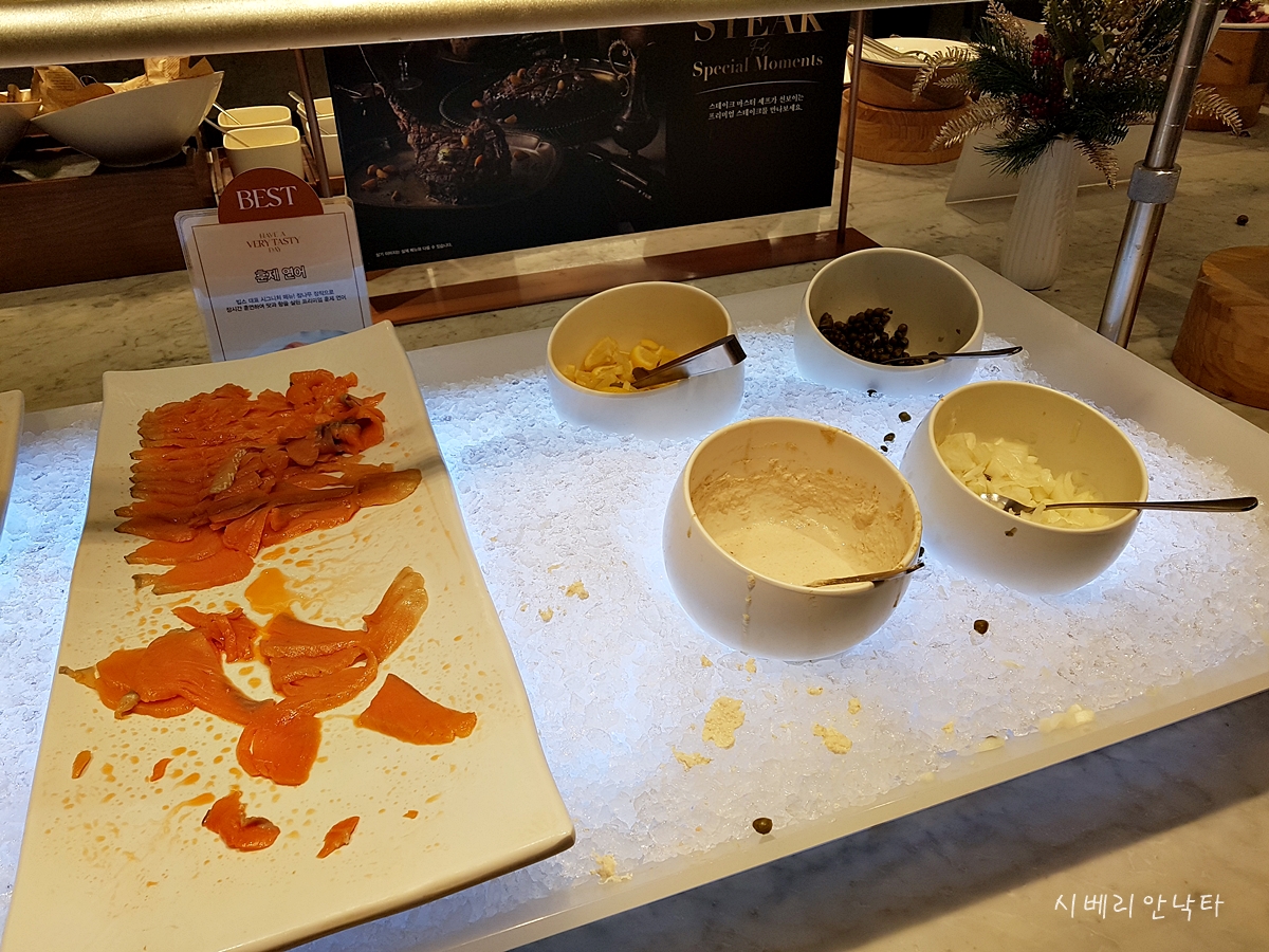 샐러드바 이용은 2시간이며, 평일점심 이용시 16시 이후에 퇴장하면 저녁가격을 내야 함에 주의하자.
