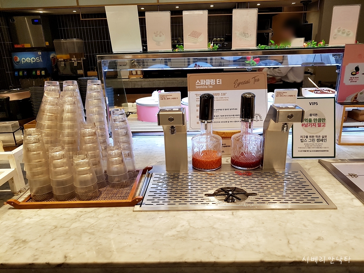 음료는 다양한 탄산음료, 스파클링티, 쥬스, 생수, 에스프레소머신 등이 있다.