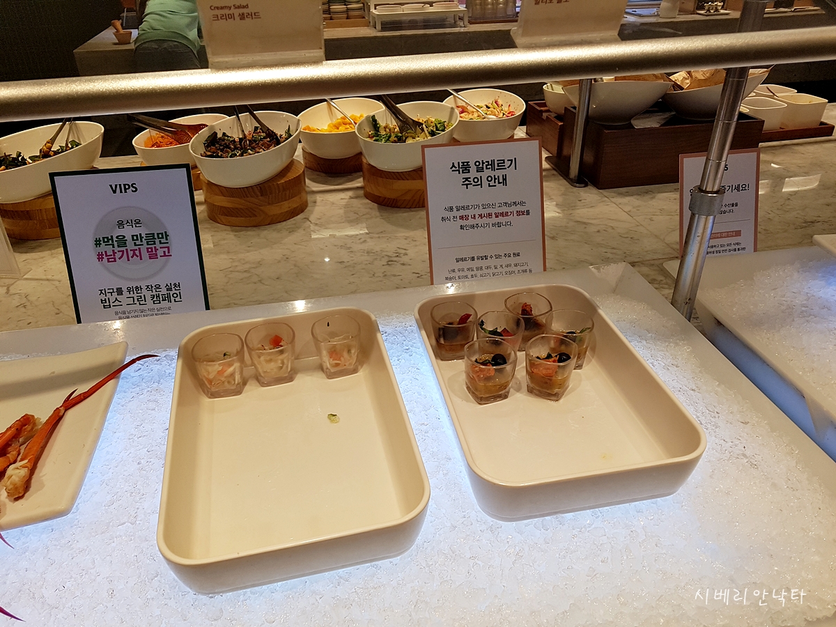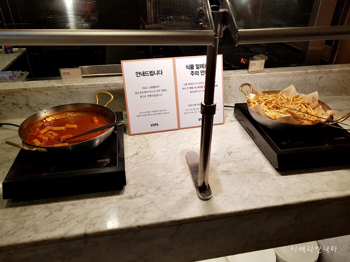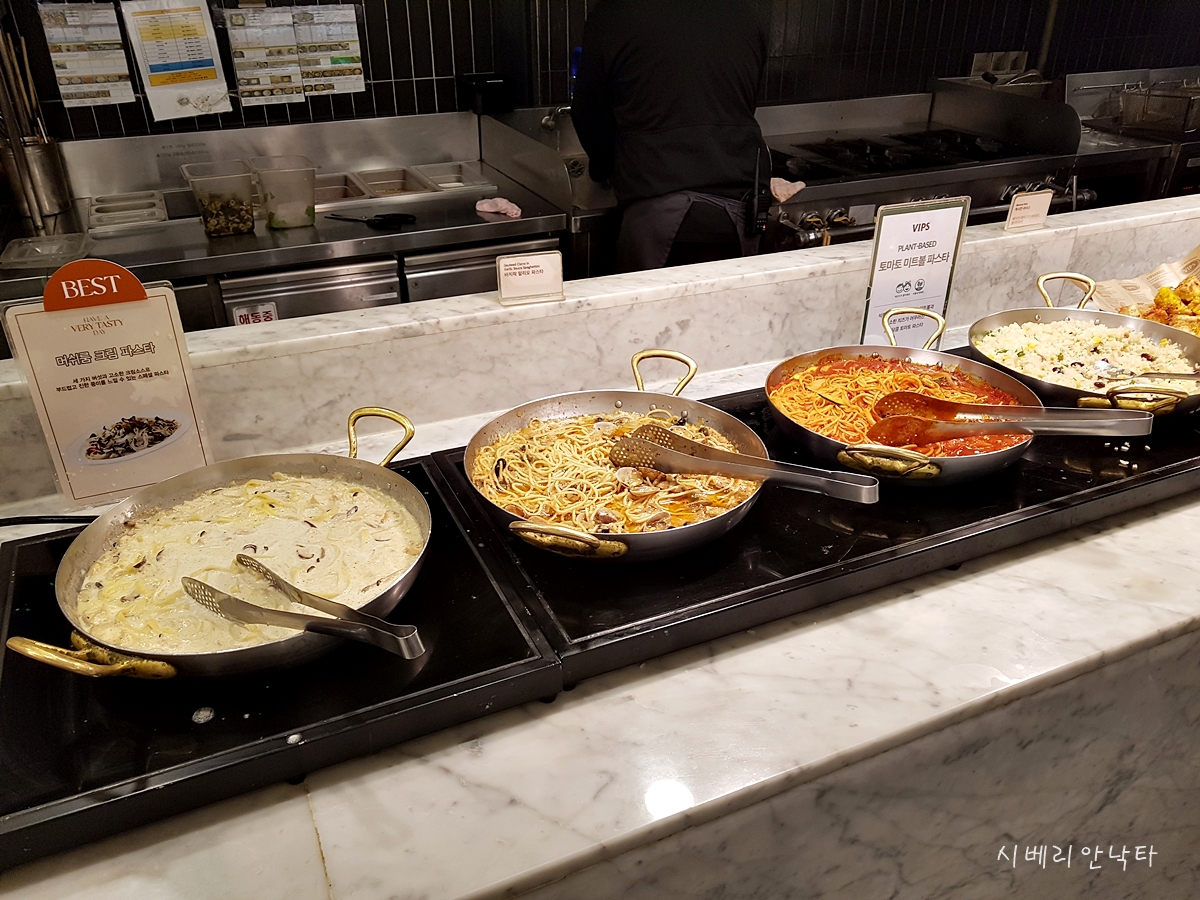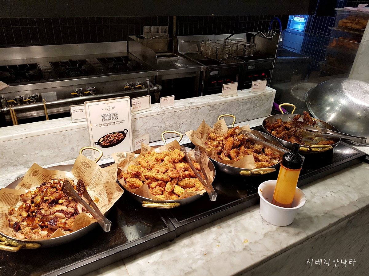테이블에 비해 음식코너는 좁지만, 음식종류를 다른 지점과 동일하다.