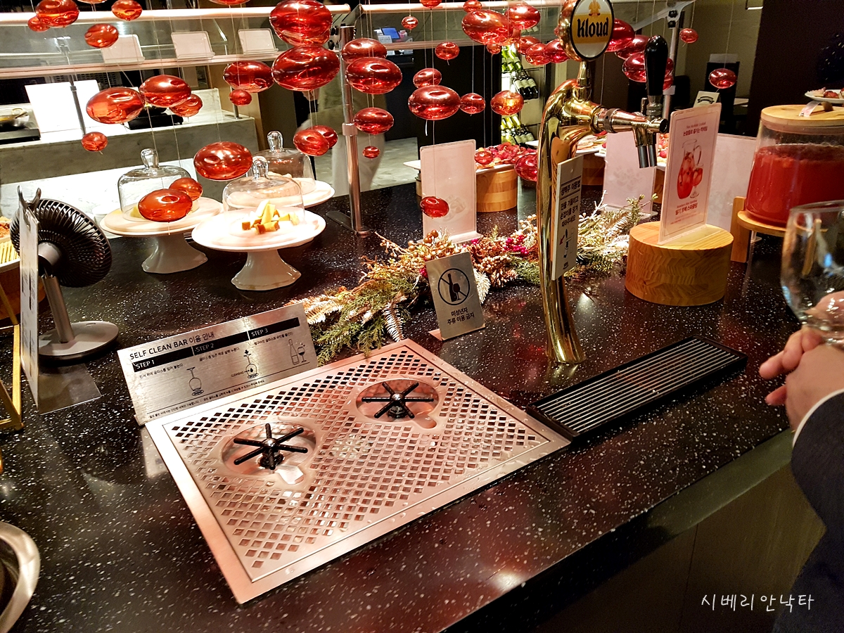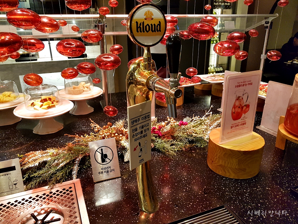 디너 샐러드바 가격에 주류 무제한 포함되어 있다. 런치에는 없는 서비스다.