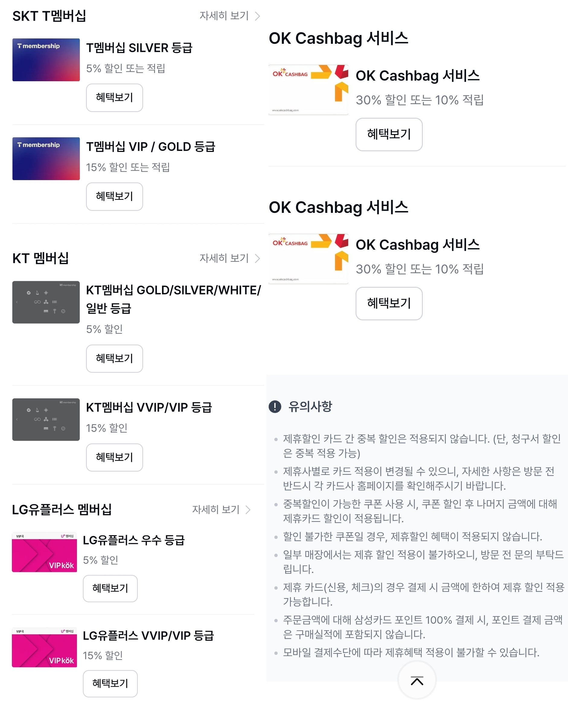 제휴, 할인 카드와 중복 할인 적용은 되지 않는다고 한다.