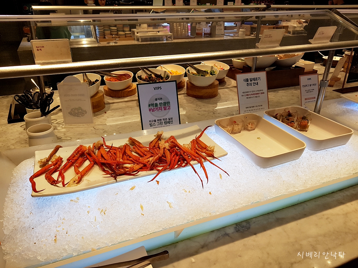 이외에도 찜코너에 새우, 홍가리비, 게, 계란찜이 있는데, 홍게가 있으니 손이 가지 않는다.