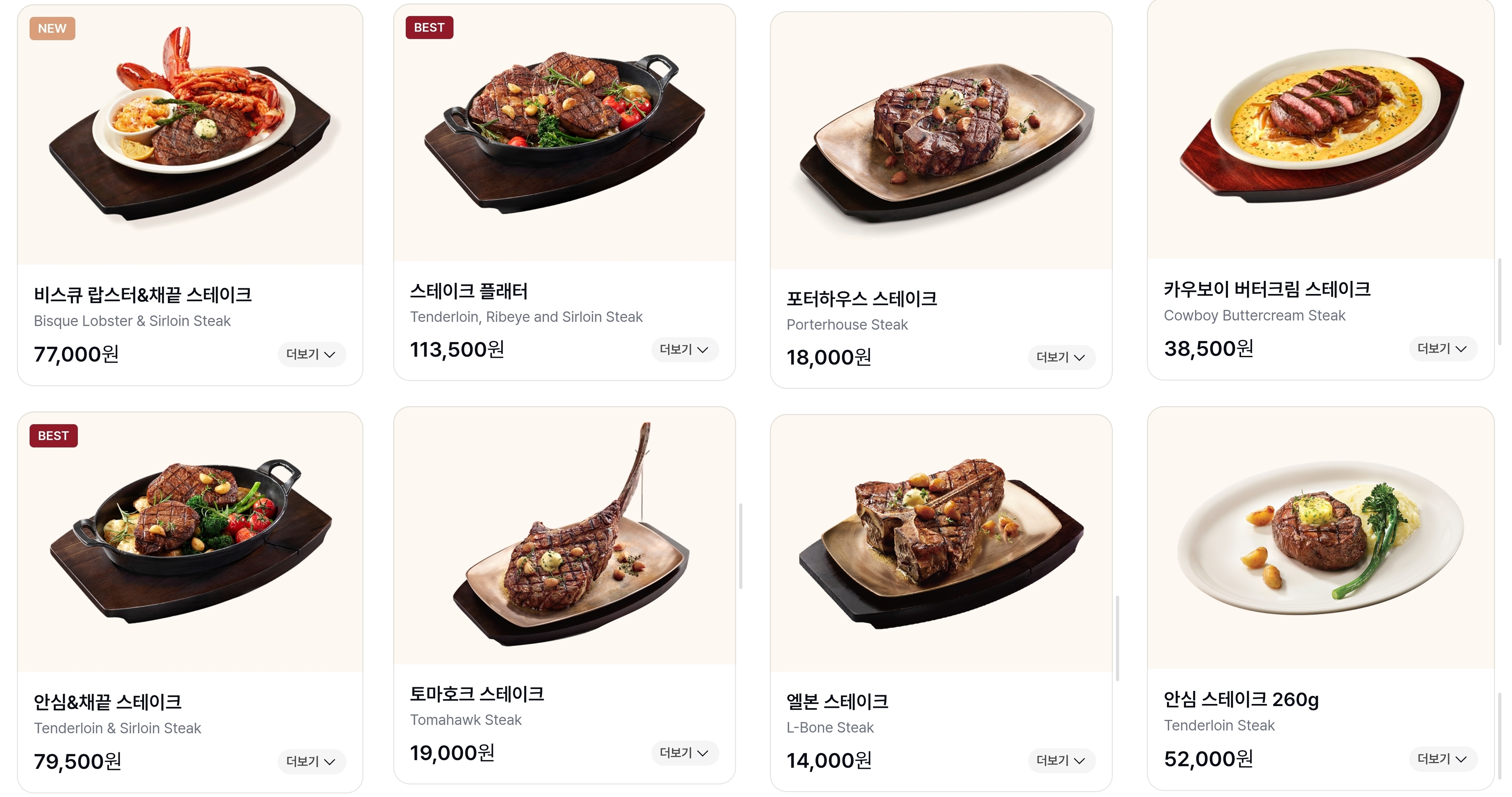 스테이크는 샐러드바를 이용해야 구매 가능한데, 스테이크와 샐러드바를 같이 이용시 기본적으로 20%정도 할인해준다. 이건 항시 가격이라 보면된다.