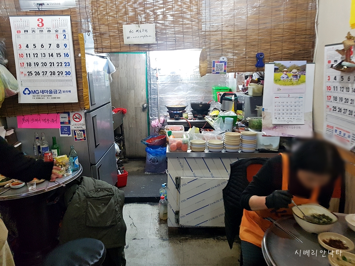 사진에도 보이지만, 여기의 단점은 허름하고 너저분한 내부상태다. 거기다 홀이 좁아서 볶음요리를 할 때면 환기가 안돼, 공기가 탁하다. 그리고 결정적으로 외부에 있는 화장실 상태가 많이 별로다. 본인도 여기서는 화장실을 잘 안 가려고 한다. 정말 여기는 이모님 음식과 가성비만 보고 가는 곳이다.