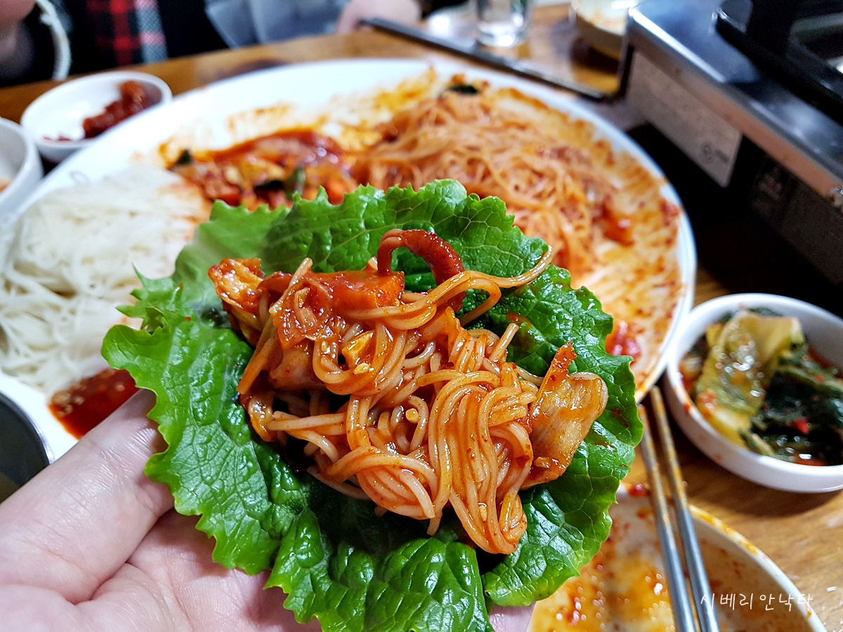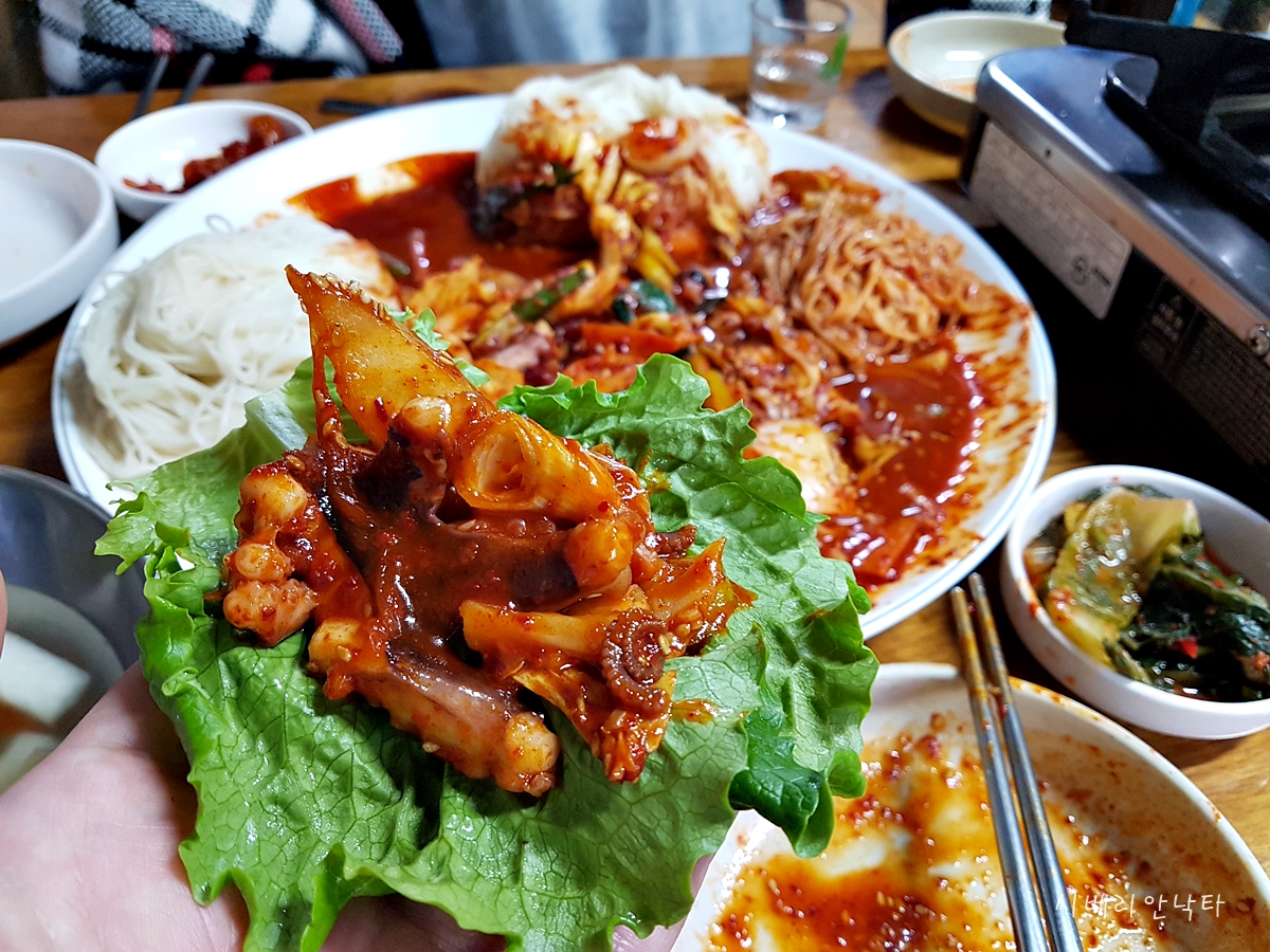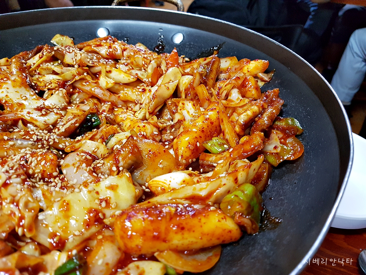 가격을 생각하면 어쩔수 없는 일이지만, 꼼장어 양은 꽤나 적다. 낙지때보다 더 적은 거 같다. 거의 꼼장어1:부재료9의 느낌이다.