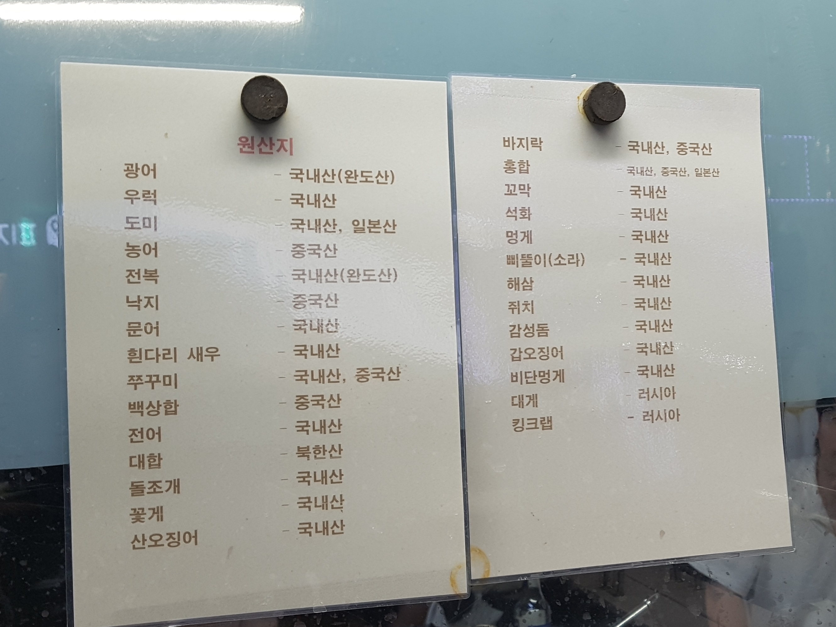 해산물 재료도 정말 많다. 딴건 모르겠는데, 대합 북한산은 특이하다.